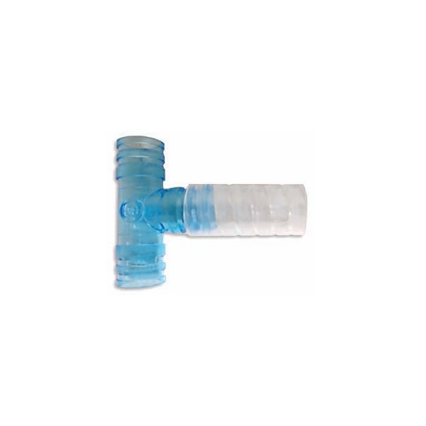 The Flamingo Funnel T Connector is a T-shaped connector that allows for two smoke capture devices to be attached to a single smoke evacuator.